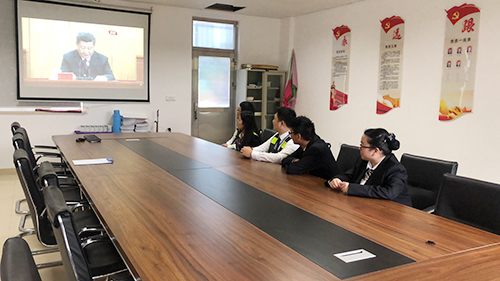 圖為臺州收費(fèi)所團(tuán)支部成員觀看大會直播